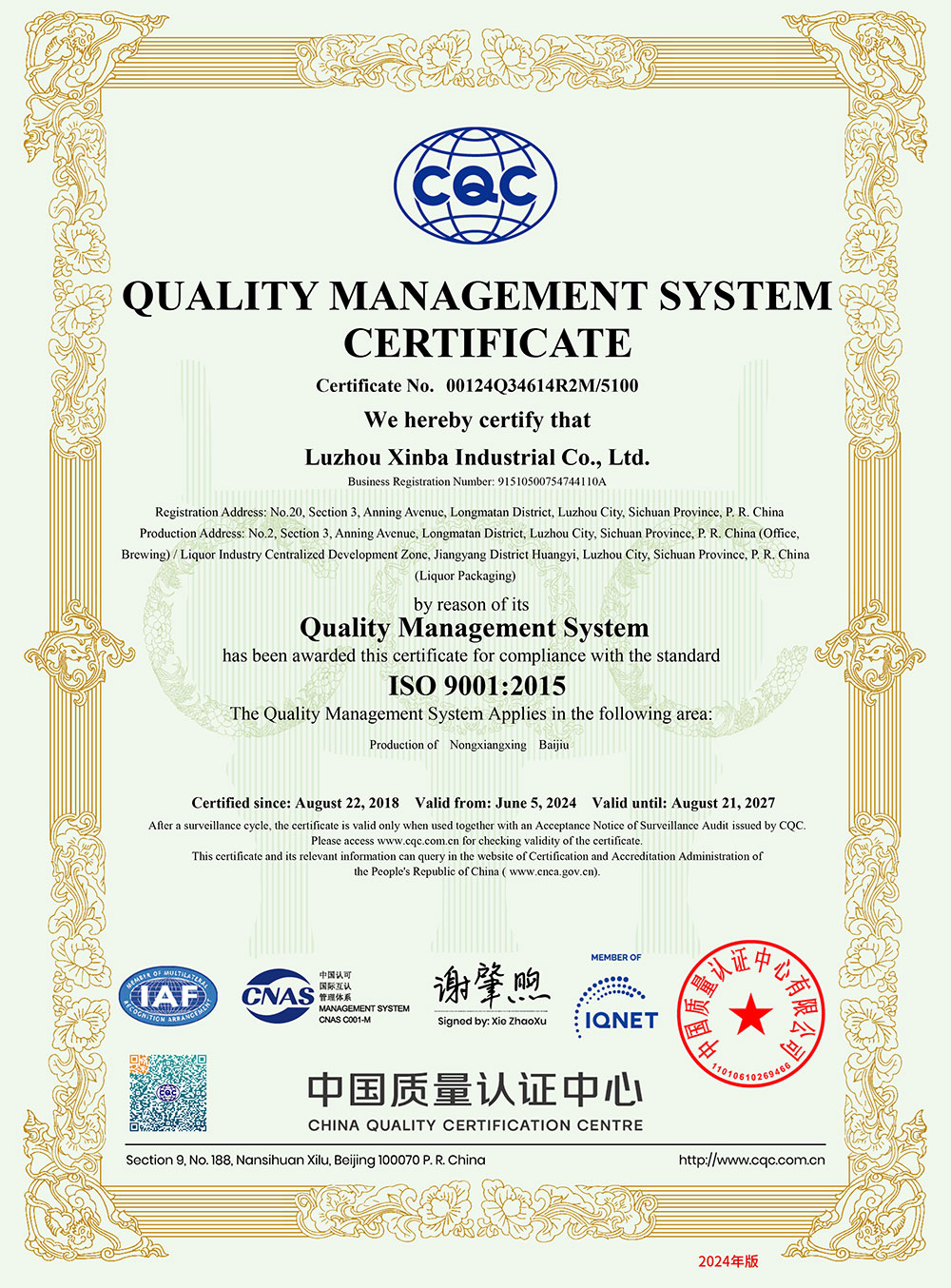質(zhì)量管理體系認(rèn)證證書(shū)